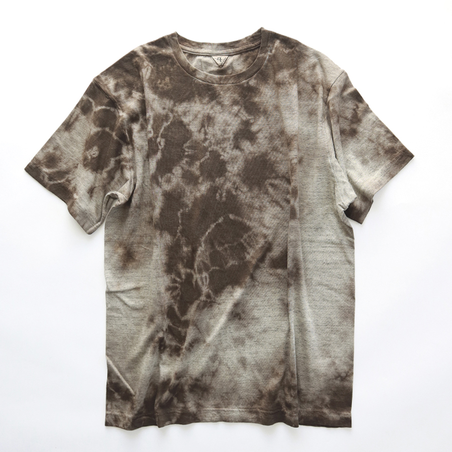 柔らかく上質なTシャツに施された、落ち着いた色合いの泥染め